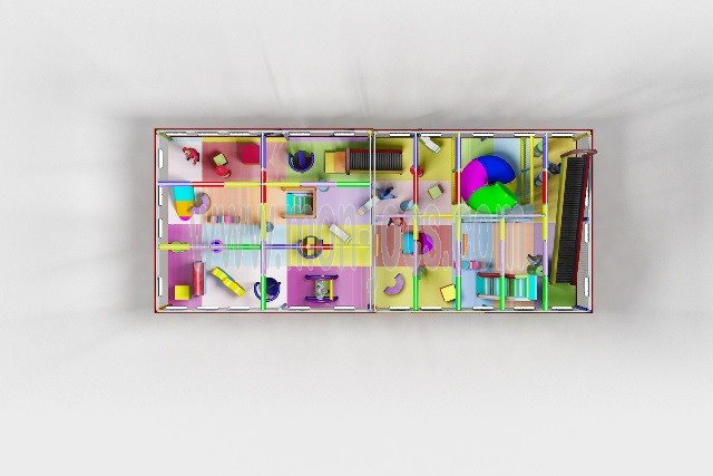 -Tableros marinos acolchados con foam de alta resistencia, instalación eléctrica cordón Led´s perimetral de alta luminosidad. Red multicolor, Puente Indy, Puente pasarela, Puertas con cerraduras, jardín Infantil en planta baja, Juego pulsadores interactivos, Tirolina con autorretorno.